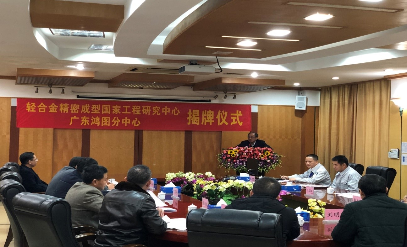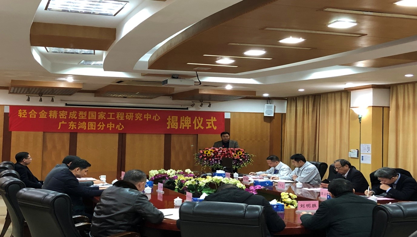 2019年1月3日,在鸿图科技公司内举行了“轻合金精密成型国家工程研究中心(鸿图科技分中心)”和“广东鸿图科技股份有限公司——轻合金精密成型工程国家研究中心轻合金产业应用基地”的揭牌仪式。上海交通大学丁文江院士、彭立明教授,肇庆市科技局谢炳权副局长、高要区常委、组织部部长孔庆峰,高要区副区长邓宏安,以及高要区经信局、科技局、金渡镇等相关部门领导,鸿图科技公司总裁徐飞跃、副总裁兼压铸事业部总经理莫建忠和压铸(本部)的管理人员、工程中心技术骨干等人员出席了活动。