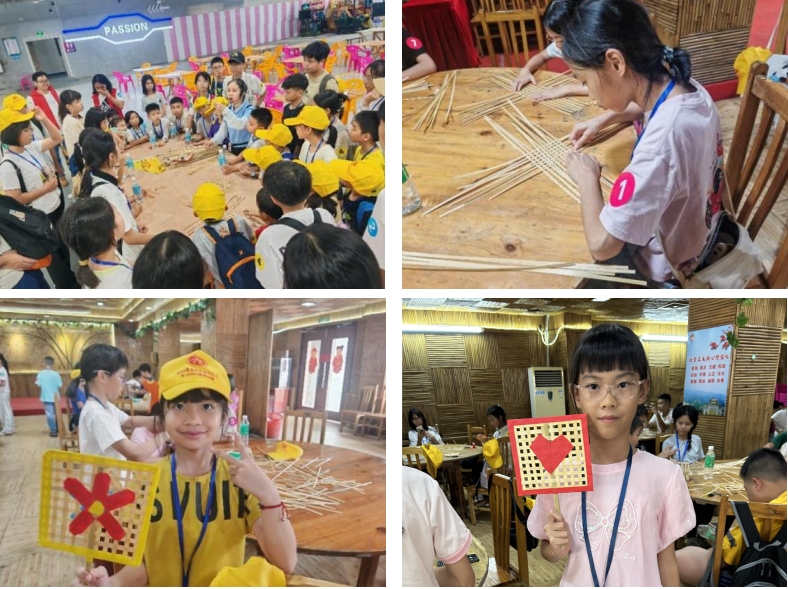在竹艺老师的带领下,孩子们亲手尝试制作竹扇,体验非遗竹编技艺。在老师的指导下,孩子们纷纷发挥想象力,创造出造型各异的竹扇作品。在这“一编一织”的体验实践中,非遗的魅力悄然渗入孩子们的心田。