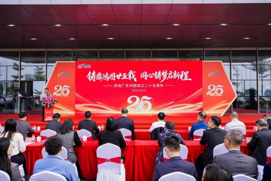 2025年12月22日,鸿图科技在肇庆金利广东鸿图科技园举行庆祝公司成立25周年会议。肇庆市委常委、副市长刘泾波,广东省粤科金融集团党委委员、副总经理刘伯仁,高要区委副书记、区长韦贤康,以及政府相关部门领导,股东方、合作伙伴、公司新老员工代表齐聚一堂,共忆二十五载风雨同舟的奋斗历程,共绘高质量发展的崭新蓝图。