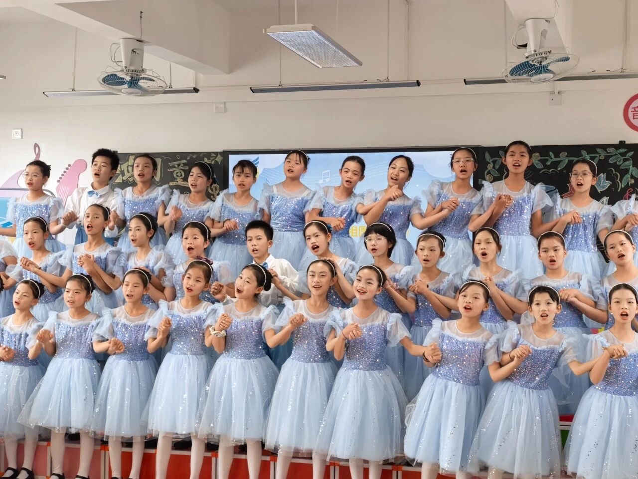 合唱团以蚬岗镇中心小学为主阵地,经过层层选拔,最终集结43名热爱歌唱的学生。自2025年10月起,合唱团已形成常态化教学机制,每周开展2次系统培训,既夯实乐理基础、发声技巧等核心素养,又通过舞台展演、录音实践等多元化形式,让乡村青少年在家门口享受到优质均衡的美育资源,有效提升综合艺术素养。